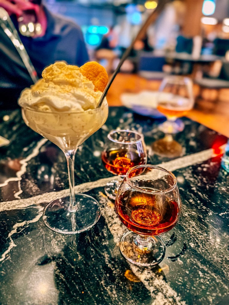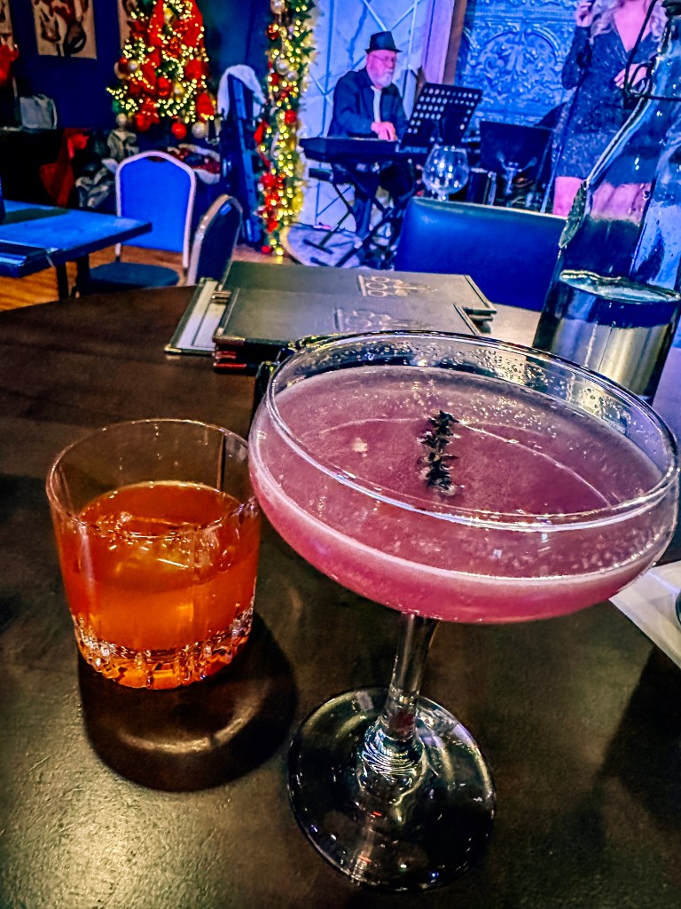 Speaking of dessert, try the “Mo’ Nanner Pudding” ($10) for a sweet ending when you visit. This just-right pudding is made fresh daily, and whimsically served in a cocktail glass. Serving as a light finish, I’d recommend pairing it with one of their younger tawny ports, or, if feeling adventurous – one of their brandies… And, speaking of drinks…let’s talk about their cocktails.