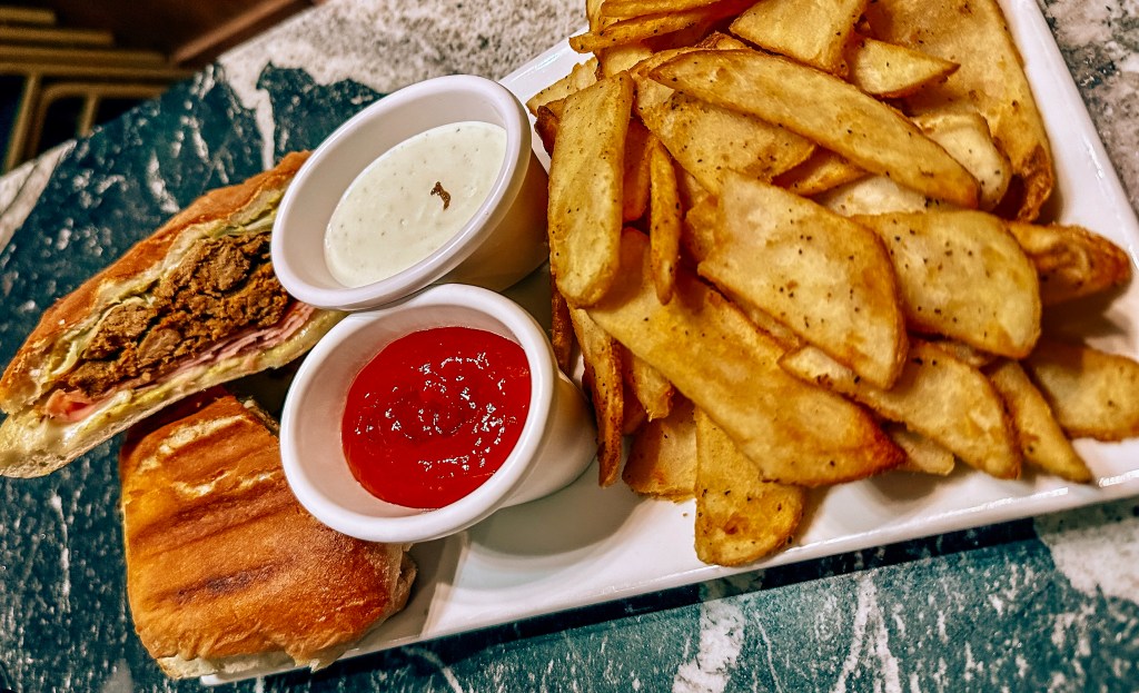 For sandwiches, try the Filet and Smoked Gouda Panini ($18) – beef tenderloin and smoked gouda on ciabatta, or the flavor-rich Cubano ($15). Sandwiches come with thinly sliced French Fry chips, best when fresh. Don’t miss the “906 Ultimate PB&J” ($10), a gourmet take with peanut butter, bacon jam, and a jalapeno/cherry preserve.